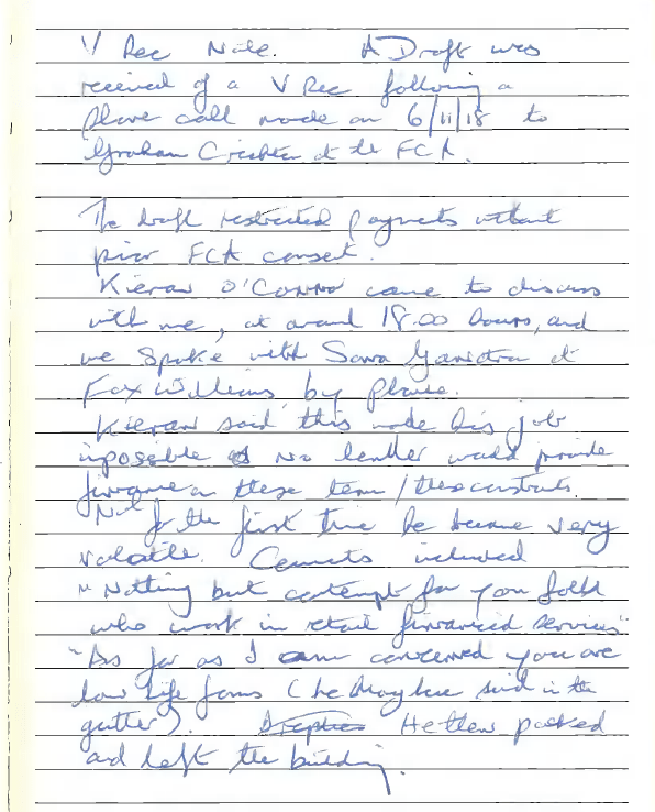 The note, written by a Mr Charles Bellringer, a self-styled “consultant specialising in the provision of advice and support to businesses in the financial services sector“, who was with Lendy at the time, is said to reflect what had happened immediately after a meeting. Mr Bellringer said in written submissions: