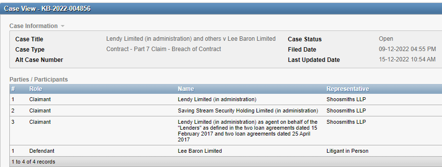 The defendant in the claim is Lee Baron Limited: “a specialist property management firm of 150 dedicated professionals headquartered in London and operating nationwide“
