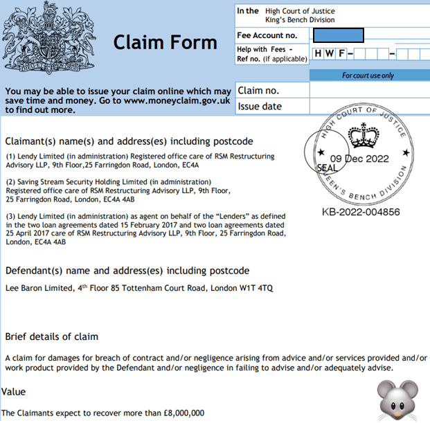 The claim form in a breach of contract claim against Lee Baron Limited, a specialist property management company based in London, has been published by the High Court, the mouseinthecourt can exclusively reveal.