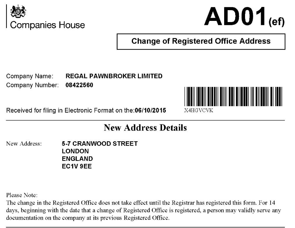 Biggs explained that on 6th October 2015, the registered office address of Regal Pawnbroker changed. “You’d sold it, hadn’t you?“