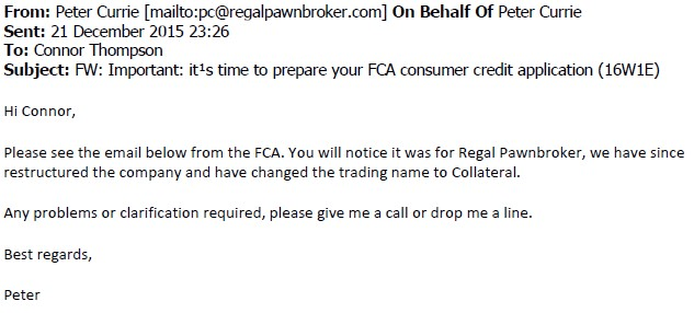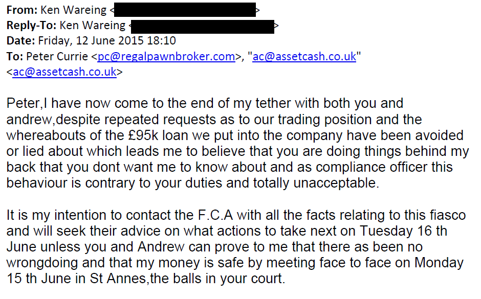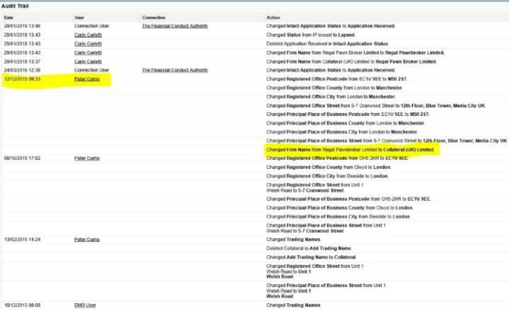 ‘This is serious I’m afraid … the FCA view would be that this was done intentionally with a view to mislead. Regal Pawnbroker has been dissolved hasn’t it?’