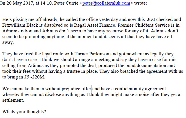 Peter Currie, commenting on a subsequent £10k payment into Collateral’s accounts, said “that was the initial payment, yes.“