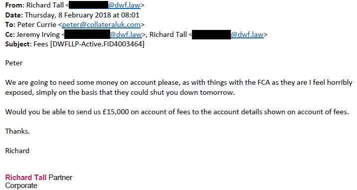 Peter Currie: “JMW wrote this email so their position was that we couldn’t provide the names and addresses [of the investors] to the FCA .“