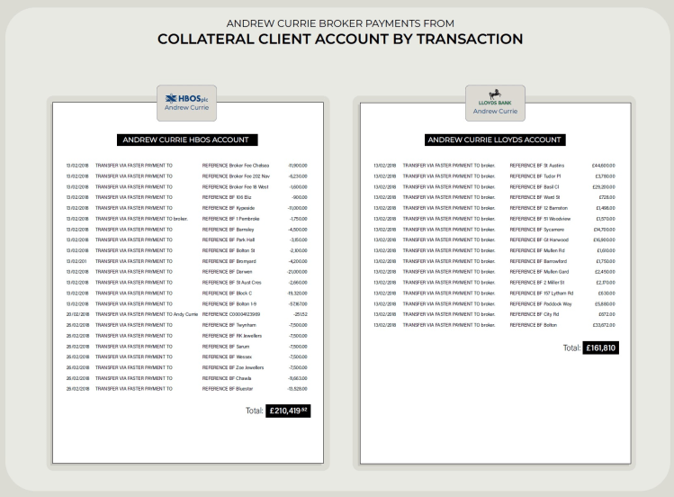 Biggs: “On 23rd February there’s £800,000 in the client account at this stage. … and then payments went to Andrew Currie but they don’t say Andrew Currie do they, they say ‘payments to brokers’. And is that by design they don’t say ‘payments to brokers’?“