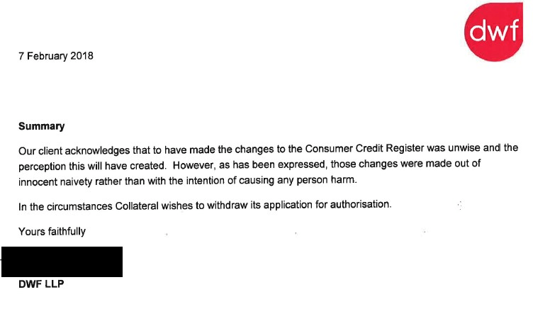 Biggs asked if on the 26th February 2018 “did you mention that you and Collateral were about to go into administration.”
