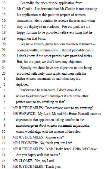 “The fourth application was by Mr Wallis, a freelance journalist, which he made himself. He had attended every day of the trial, and was posting reports online of what was occurring during the legal argument and evidence at the trial.“