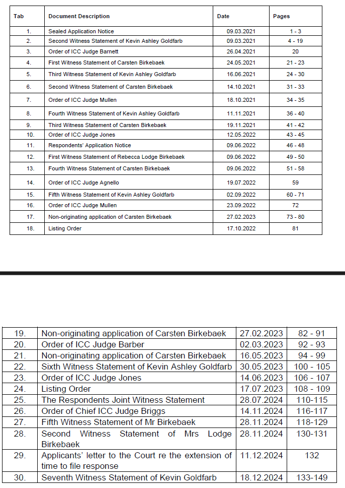 Granting my request for access to the witness statements and skeleton arguments the judge went one step further – and instructed that I should be given access to the entire core bundle, containing some 151 pages of material (the index of which, showing the depth of information made available, is shown here)