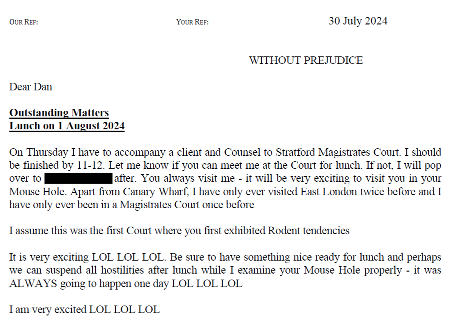 He had warned me he was coming to my house. In a PDF letter attached to an email marked with the legal term without prejudice, he said he was going to pop by for lunch and ‘examine my Mouse Hole properly’.